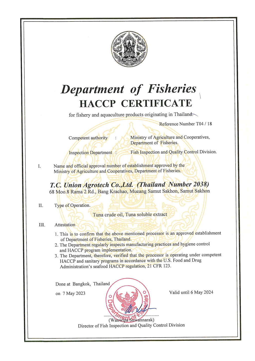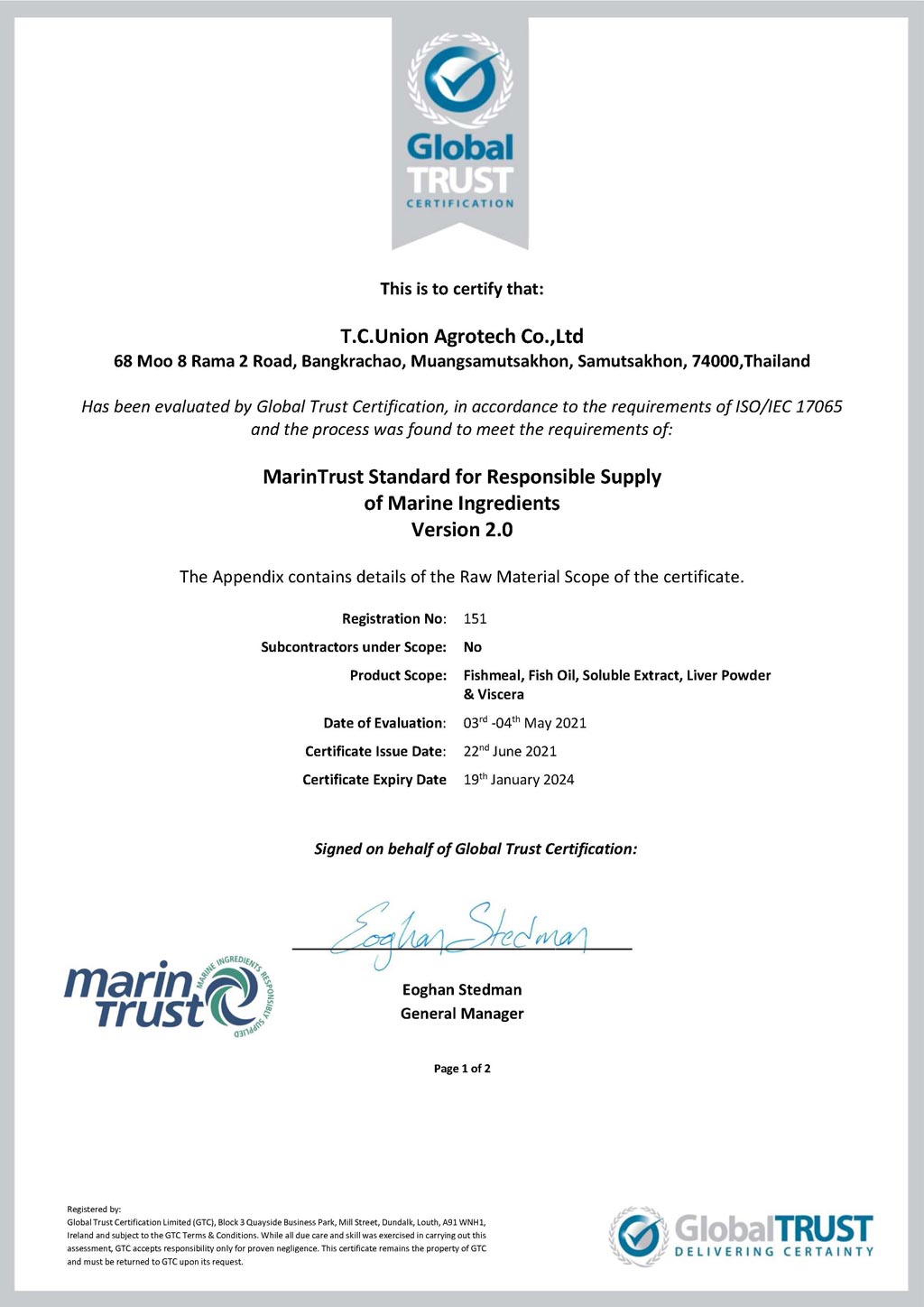 At T.C. Union Agrotech we have therefore chosen to take responsibility and to commit ourselves to our product’s significant share of the total food chain through a comprehensive quality assurance program in accordance with IFFO RS , IUU and ISO 9001 which allows us total control of product safety throughout all the processes.